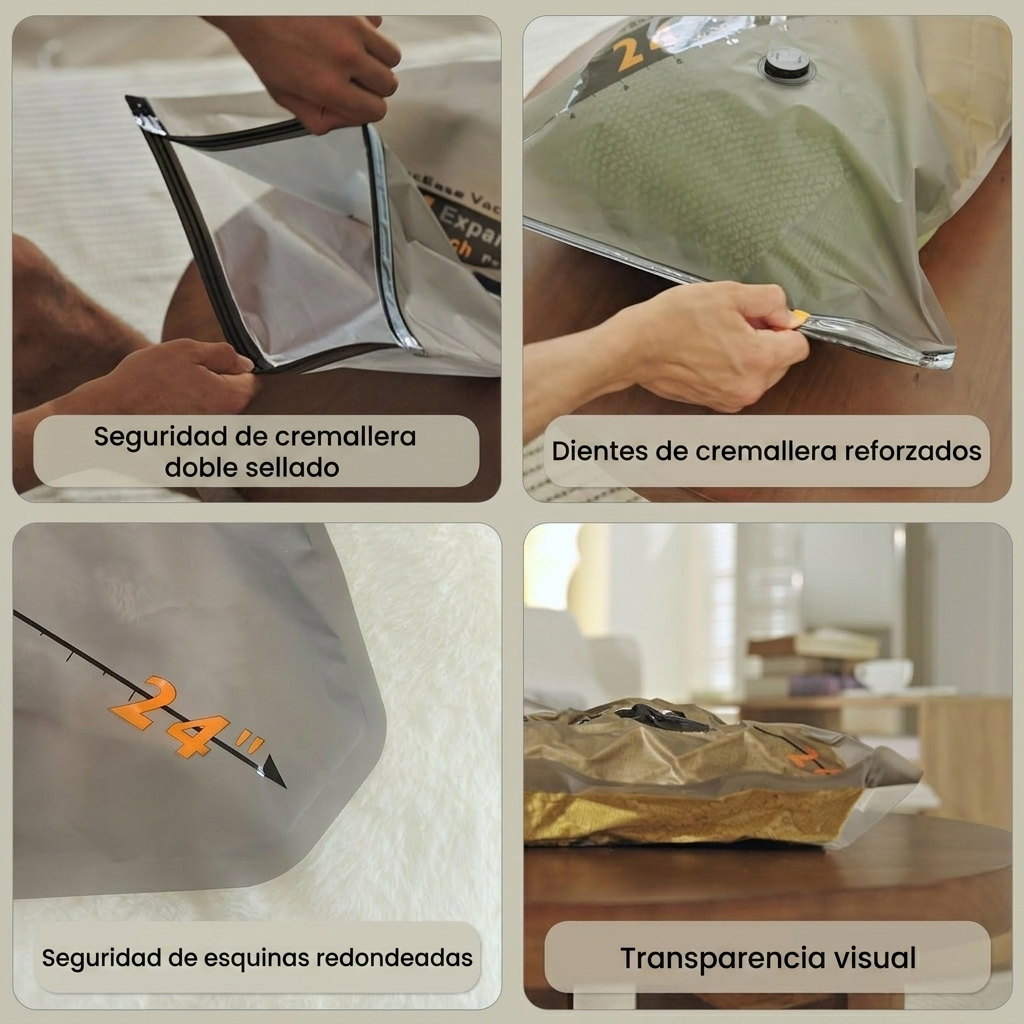 Las bolsas están muy bien fabricadas con un plástico grueso y el cierre hermético aguanta perfectamente. He ganado el doble de espacio en mi maleta. Perfectas para viajes cortos o largos. La bomba inalámbrica es un plus que marca la diferencia.