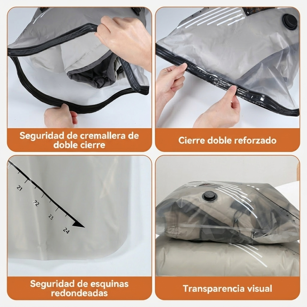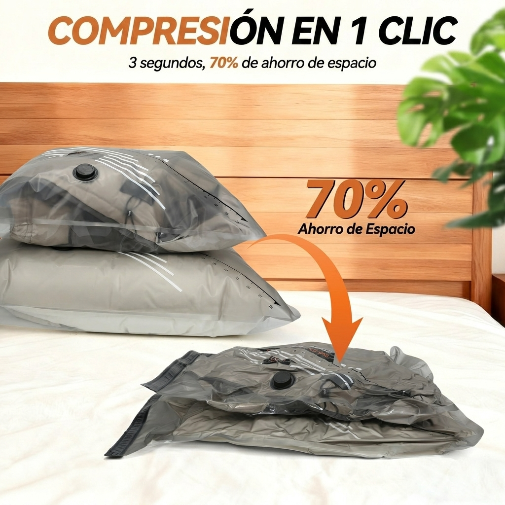 Estas bolsas son perfectas para viajes, mudanzas y almacenamiento. Protegen contra la humedad y el polvo, y la bomba eléctrica inalámbrica hace que comprimir sea muy fácil. Las bolsas están muy bien fabricadas el plástico es grueso y el cierre hermético aguanta perfectamente. ¡He ganado el doble de espacio en mi maleta!